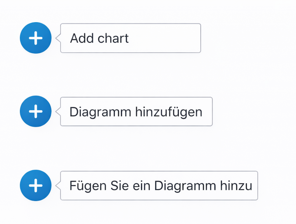 In English, your tooltip might say “Add chart”. In German, it becomes “Diagramm hinzufügen” (infinitive version with a noun) or even worse “Fügen Sie ein Diagramm hinzu” (imperative style). Suddenly it’s much longer and breaks out of the container.